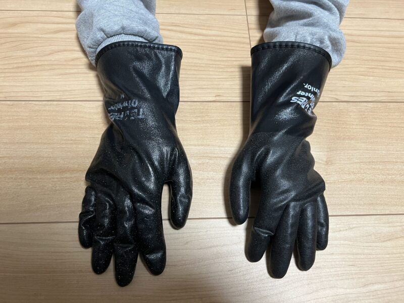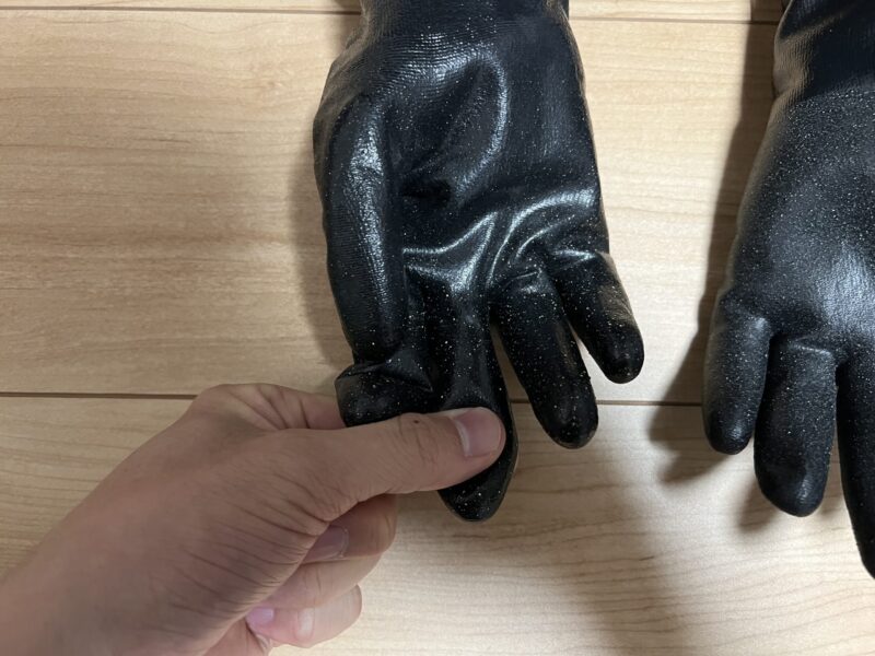 水は通さず湿気だけ逃がす透湿コーティング。雪遊びや登山での“汗冷え”を軽減してくれるので、子どもが長時間遊んでもムレにくく快適です。もちろん透湿性で有名なのはゴアテックスで、機能としても透湿性だけではかないません。しかし、ゴム手袋なのに透湿性を備えているということ自体が画期的です。