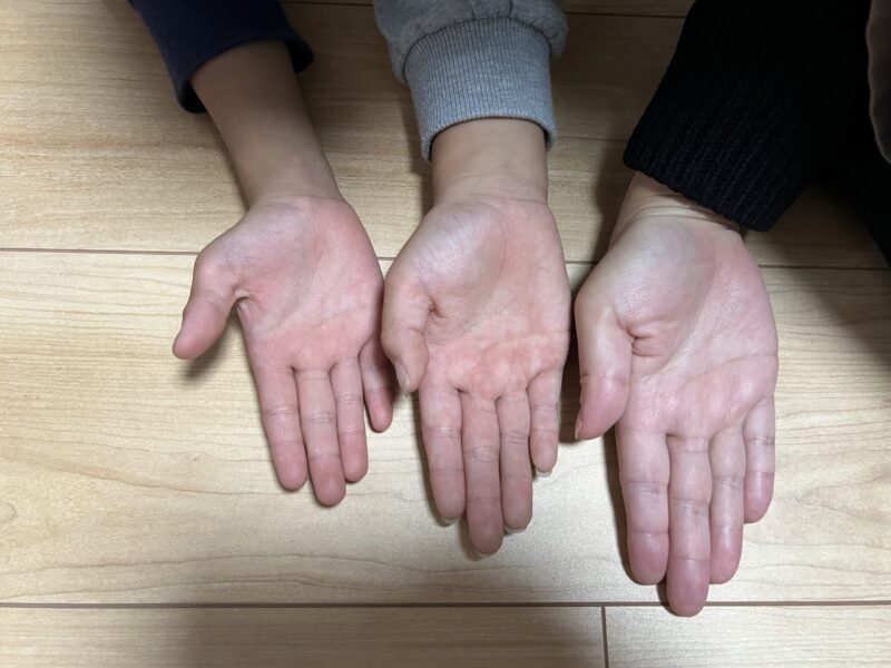 ここで一番大事なのは手のひらまわりのサイズです。小学生の子どもの場合はジュニアサイズが一つしかないので、サイズが合わない場合はスプリンゲンにした方がいいかと思います。大人用だと指の長さが合わない可能性があります。そして、手のひらまわりは-2~4㎝くらいがよさそうです。ジュニアサイズは指まわりが細めなので、次男もインナーをつけるときつくなってしまいました。
